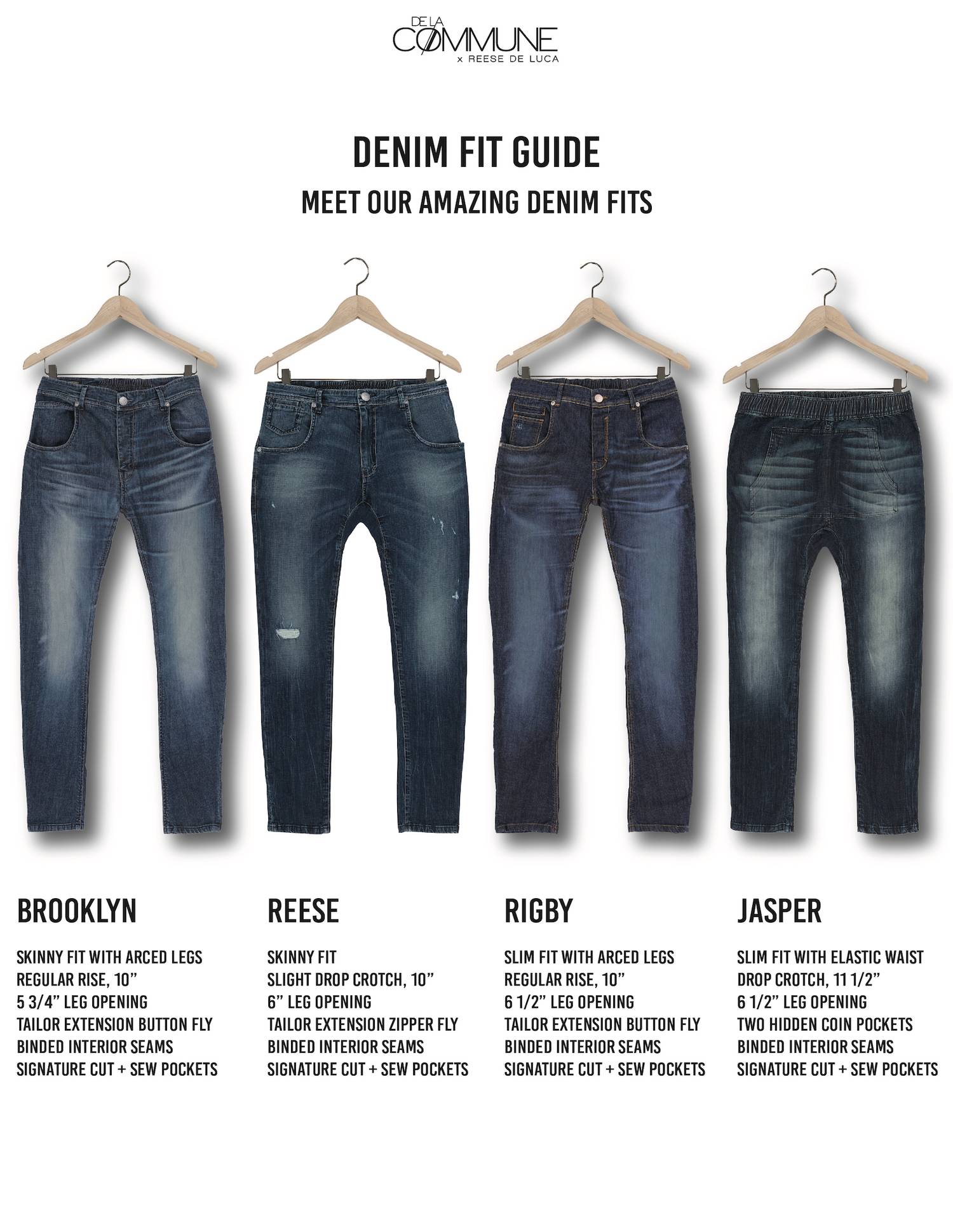 Product linesheet for DE LA COMMUNE by Reese De Luca. Shot in studio in Los Angeles.